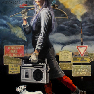 'Having always been fascinated by people and their stories, I guess that is why I create and am a fan of Figurative Art! For my Paintings I try to create big, dramatic, graphically strong, yet technically executed representational works. I have created my own mash-up style inspired from living in this Los Angeles melting pot. The result is a diverse and tough-chic, modern group of individuals with attitude. My paintings aren't traditional portraits, they are a different vision of power and pop culture flavored with our ongoing struggles. A lot of my paintings have been about women’s rights, I have tried to portray a modern independent woman that is not one dimensional but is pulled in many directions. Trying to reconcile expectations of traditional women’s roles with today’s realities, her own goals, ambitions, and doubts in an ever-changing world!'
