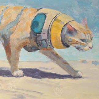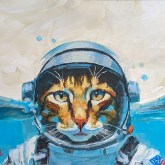 'Odyssey', acrylic and oil, 6 x 9 inches., 'Cat Astronaut', acrylic,
